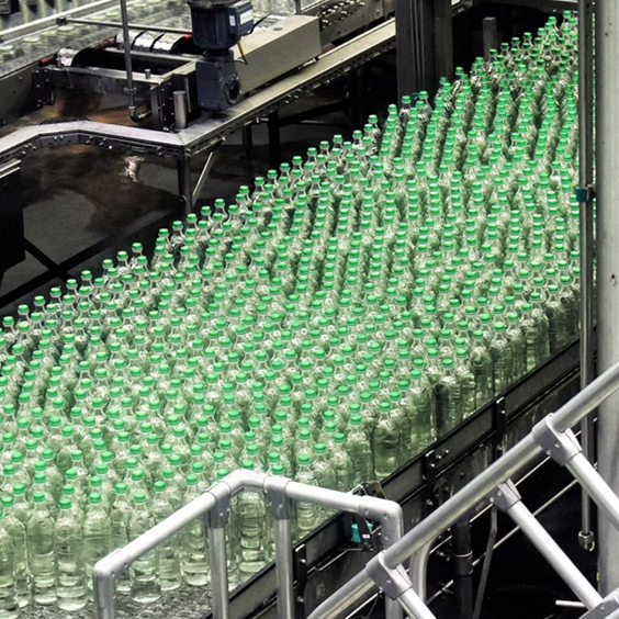 At the recycling centers, the bottles are inspected for impurities and the bottles selected for recycling are sorted.